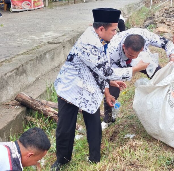 HUT PGRI Ke-80, Wabup Solok H. Candra Pimpinan Aksi Bersih Bersih Sampah