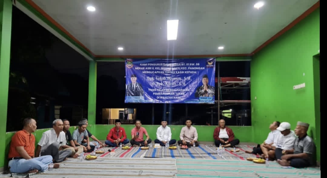 Salah tokoh masyarakat setempat, menyampaikan ucapan terima kasihnya kepada Yakub yang telah mengawal dan memperjuangkan aspirasi masyarakat terhadap usulan pembangunan turab di RT 01/06, Perunahan Mekar Asri.
