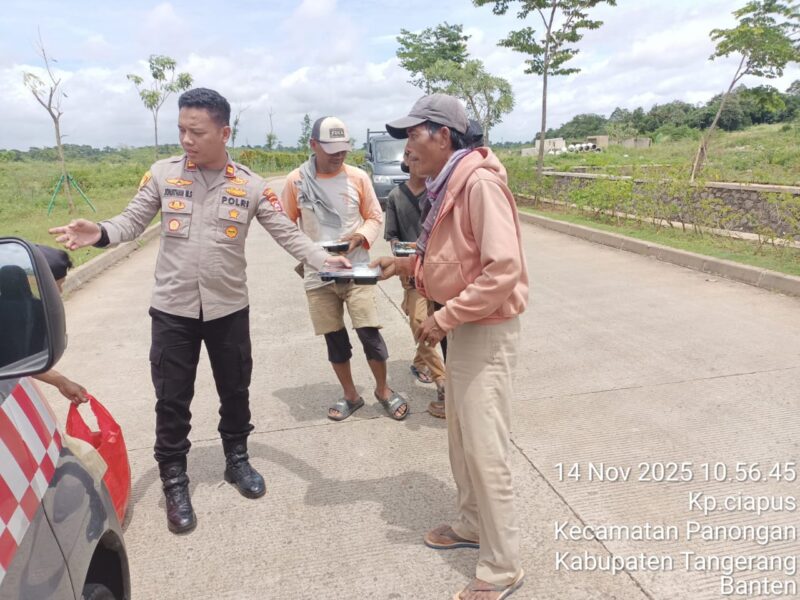 Dalam kegiatan tersebut, jajaran Polsek Panongan membagikan paket makan siang berupa nasi box dan air mineral kepada sejumlah kelompok pekerja harian, seperti ojek online, ojek pangkalan, petugas kebersihan jalan, pengais barang bekas, serta pekerja bangunan.