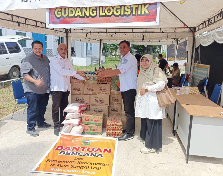 Di Posko Utama Koto Baru, Camat IX Koto Sungai Lasi Serahkan Bantuan untuk Masyarakat Terdampak Bencana