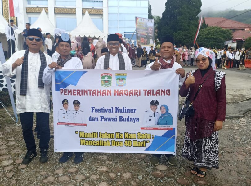 Kontingen Nagari Talang dalam Festival Kuliner dan Pawai Budaya tersebut, dipimpin langsung Wali Nagari Talang Zulfadri juga Ketua TP PKK Nagari Talang, Nora Zulfadri.